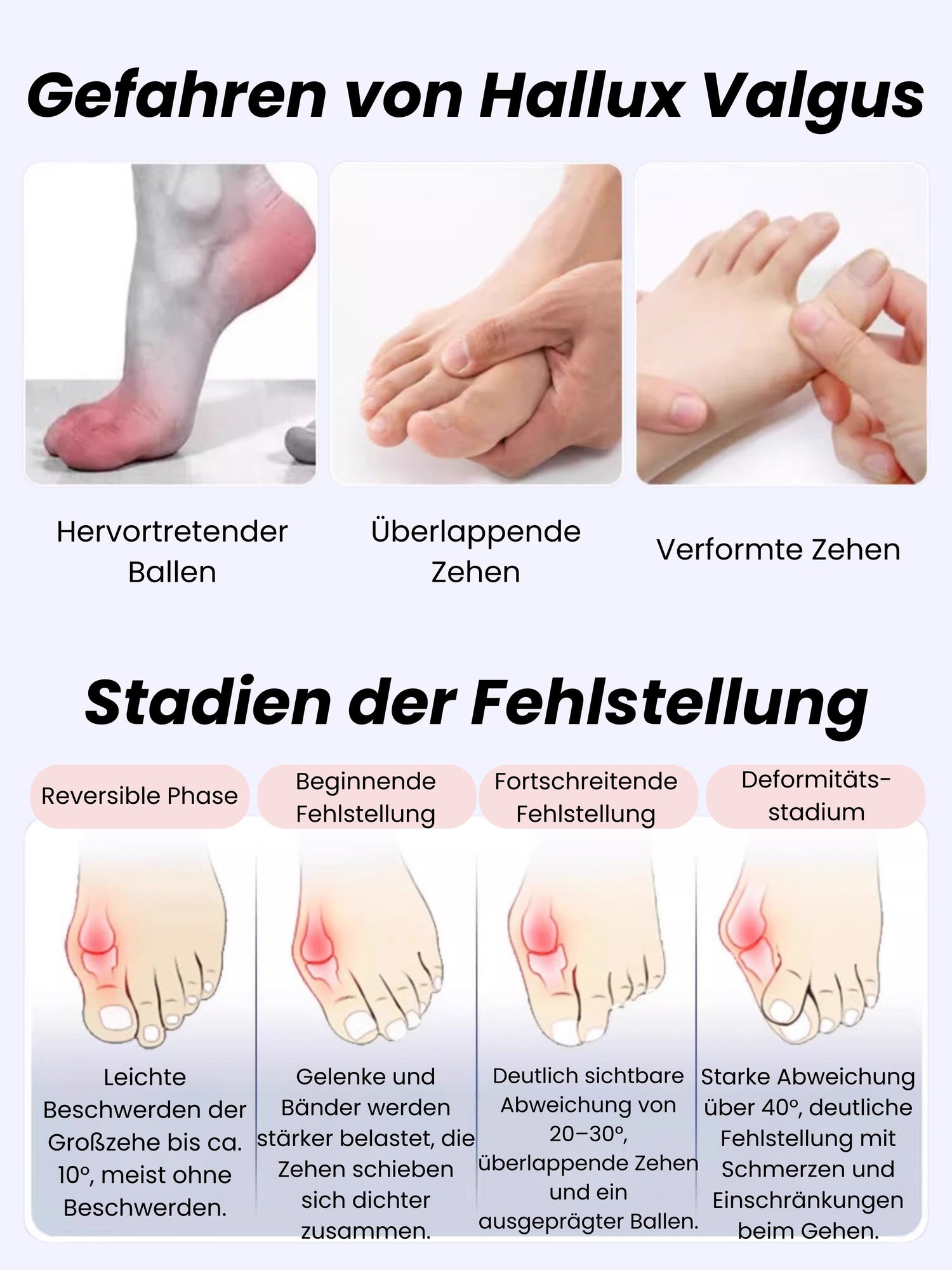 Der AlpenCare™ Zehentrenner eignet sich lediglich zur Entlastung, nicht zur Korrektur für: